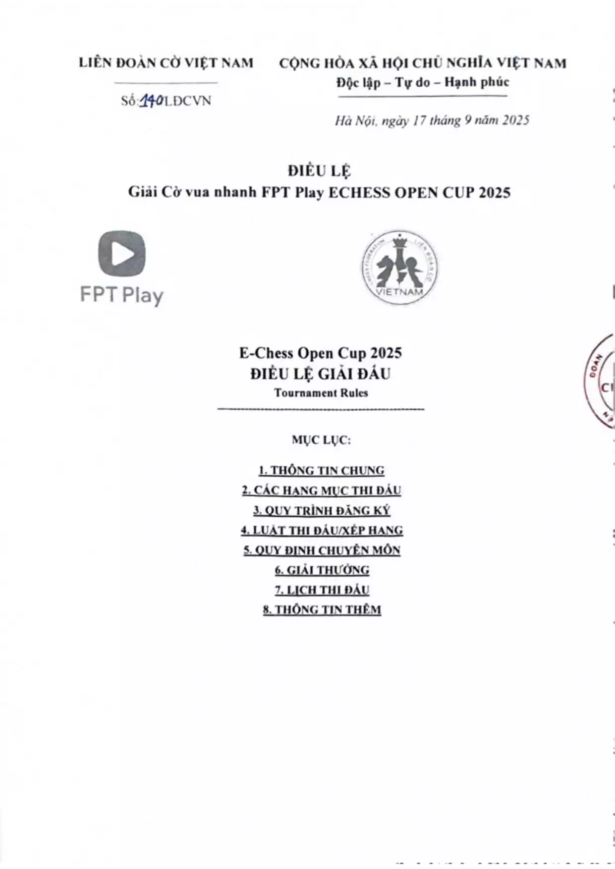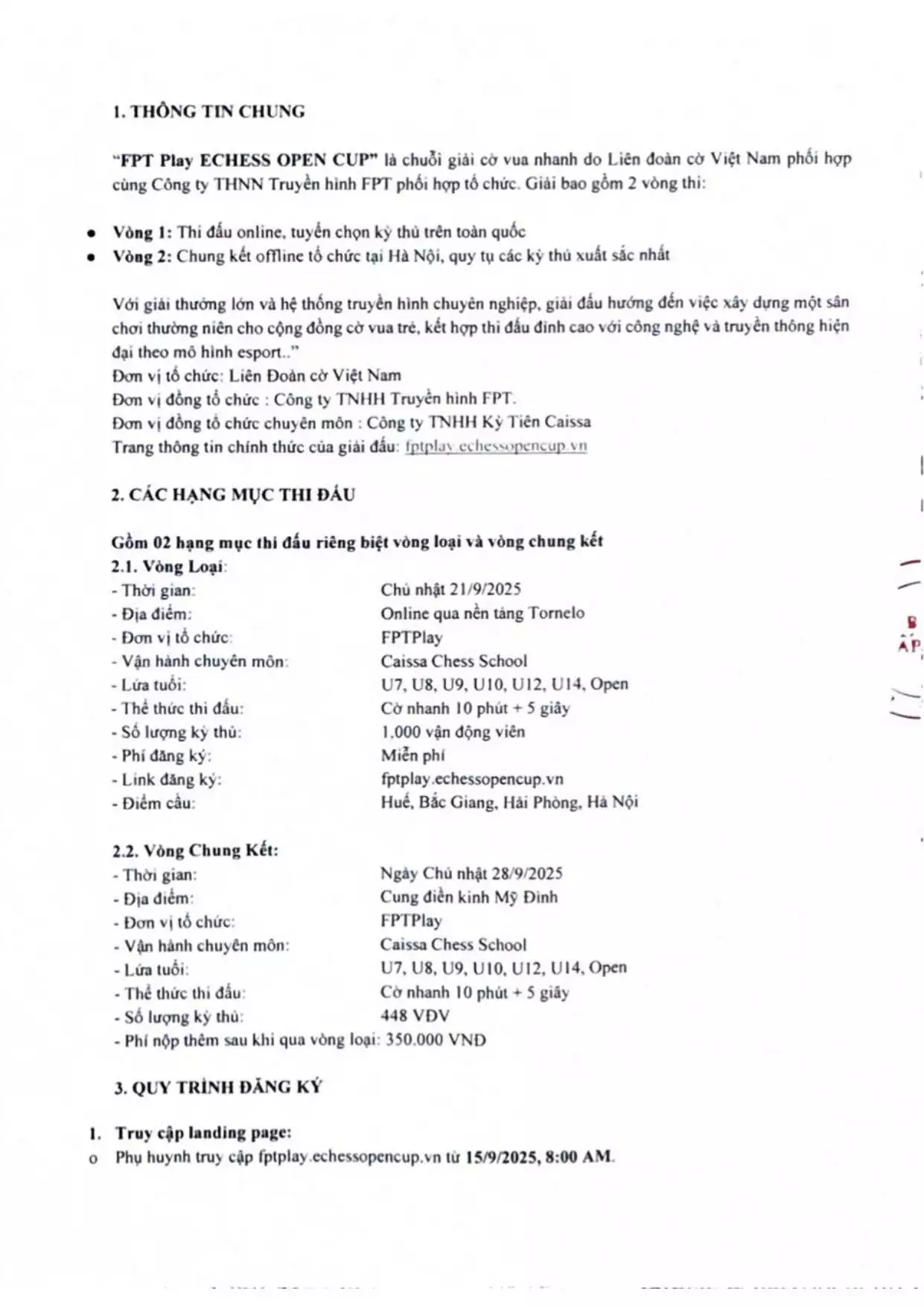 Bắt đầu mở cổng lúc 08:00, 17/09/2025 (GMT+7) trên fptplay.echessopencup.vn.